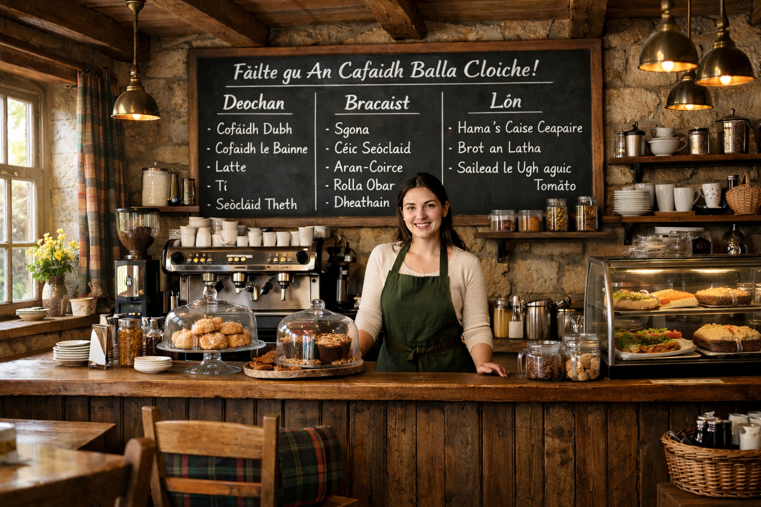 Welcome to An Cafaidh Balla Cloiche — The Stone Wall Coffee Shop. We'll use this real-world setting to learn Gàidhlig naturally. Choose your level to begin.